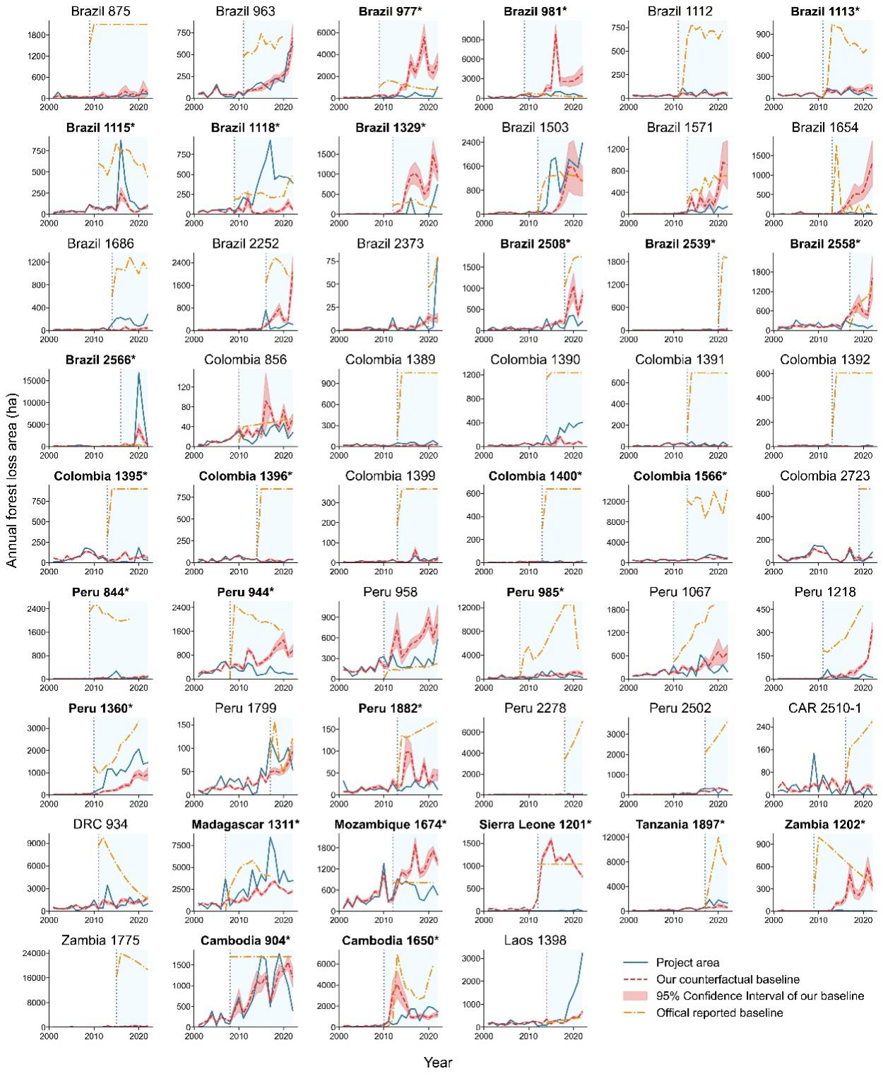 热带森林保护对全球碳减排和碳中和至关重要,每年因森林损失和退化造成的碳排放高达50亿吨,仅次于化石燃料。自愿碳市场(VCM)通过碳信用(carbon credit)交易推动全球自愿减排实践,其中REDD+项目是林业碳信用的主要来源,旨在避免毁林以减少排放。自愿REDD+项目碳信用核算依赖基线情景——即假设无项目干预时的森林损失情景,为项目减排量核算提供参考基准。由于基线无法直接观测,成为方法学的关键挑战。当前REDD+基线测算被指存在透明度不足、毁林风险夸大、碳信用超额发放等问题,气候效益广受质疑。最新研究表明,仅6.1%的热带森林保护碳信用具有真实减排效果,严重削弱市场信任。为了准确评估REDD+项目的气候效益,恢复市场信心,亟需更透明、稳健的基线评估方法。