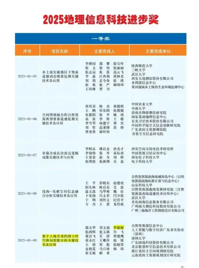 地理信息科技进步奖是我国地理信息领域极具权威性和影响力的国家级科技奖项之一,由中国地理信息产业协会设立,旨在表彰在地理信息科学技术研究、工程应用及产业创新方面作出突出贡献的集体和个人。