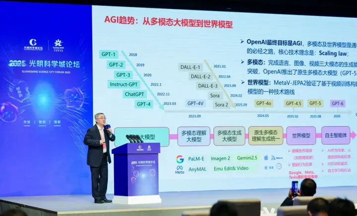 田奇指出,当前人工智能正处于从自然语言走向多模态、再从多模态走向世界模型的阶段。AI大模型正在重塑千行百业,成为新时代人工智能的标配。AI大模型的下一步是世界模型,其作为AI发展的下一代关键方向,已成为行业前沿探索焦点。OpenAI发布的Sora、Meta的V-JEPA2、谷歌DeepMind的Genie 3等,均被视为世界模拟器的初步重要实践,但目前对世界模型的探索仍处于早期阶段,技术路径尚未形成形成统一认知。