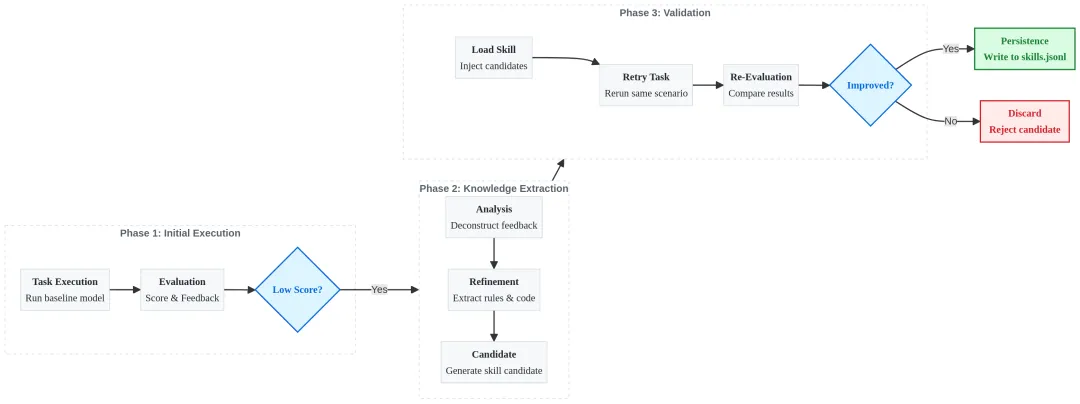 在实际任务中,智能体面临一个真实的痛点:为智能体(Agent)预设的技能清单再长,也赶不上业务场景的千变万化。 每次遇到新需求都要人工反复微调提示词,不仅适配成本极高,也让 AI 沦为了一个需要时刻被“手把手教”的提线木偶。