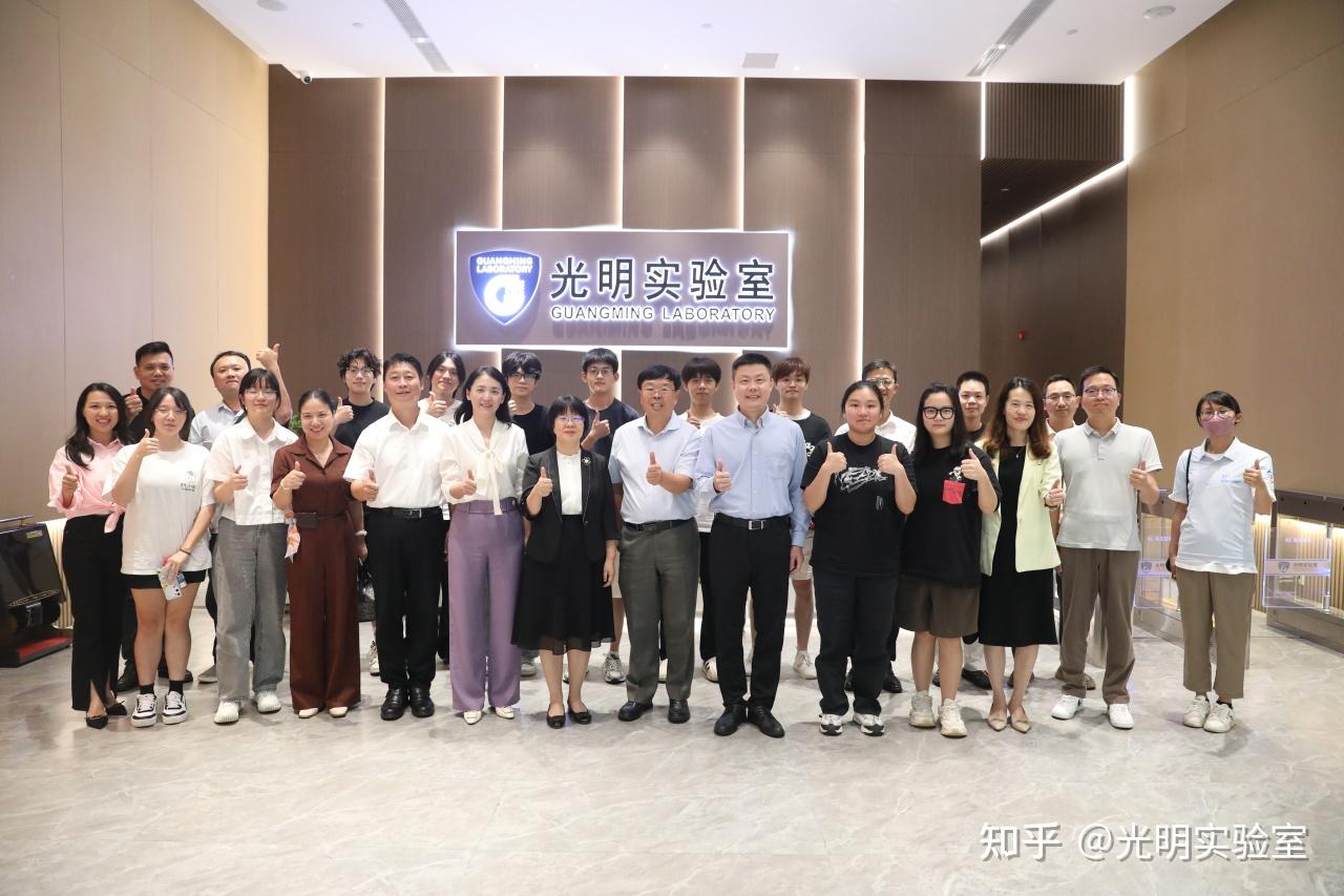 正式座谈会开始前,光明实验室协理副主任黄哲学教授化身“首席向导”,带领各位领导及实习学生深入光明实验室展厅。黄教授详细介绍了光明实验室在战略定位、技术应用、成果转化等方面的实践成果。